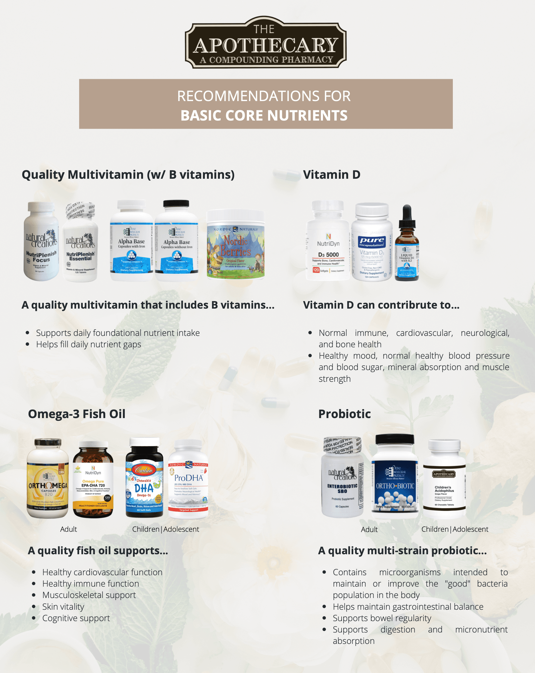 Visit Shop Supplements to access the different categories of targeted support recommendations. Feel free to stop in or give one of our pharmacists a call at The Apothecary 320-251-0107. Note: Mail-order shipping cost varies by order.