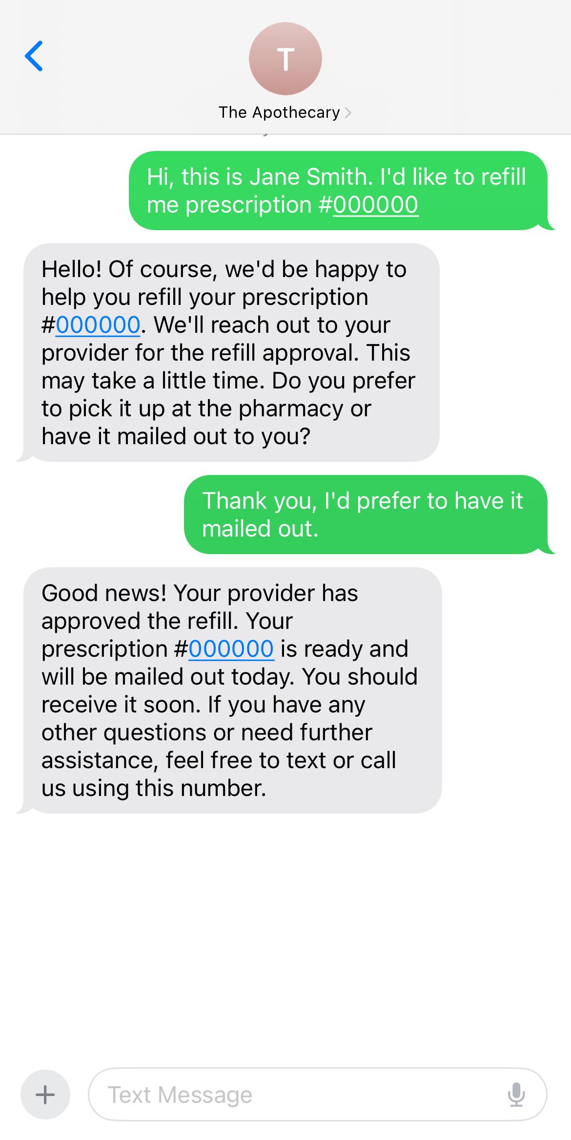 You can now TEXT The Apothecary phone number—320-251-0107.