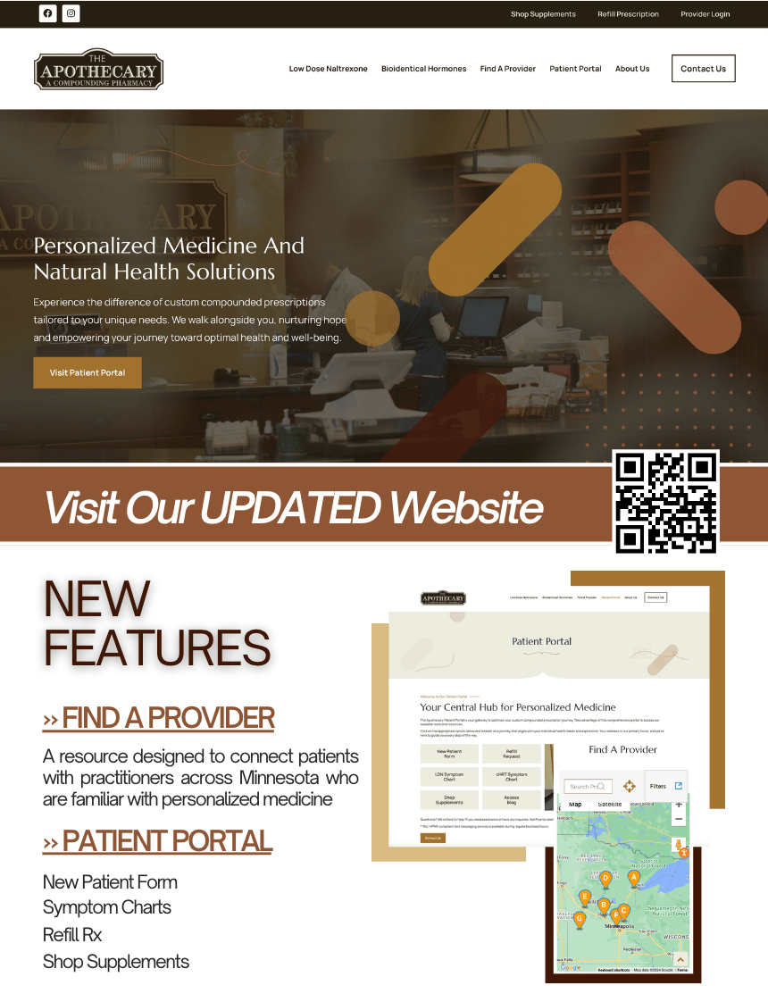 » PATIENT PORTAL — Designed for quick access to prescription management resources, including navigation buttons to our patient intake form, symptom tracking charts, refill request form, online supplement drop-ship stores, and targeted support blogs.