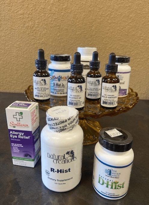 - Homeopathic Antigen Drops by Natural Creations — Allergy HP, Weed & Grass Antigen, and Tree Antigen [available in-store]: Temporarily relieves symptoms associated with targeted allergen responses.